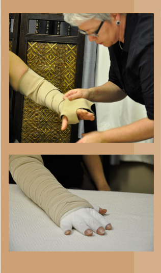 La compression est un des éléments nécessaires dans la gestion du lymphoedème. Le vêtement compressif doit être porté le jour essentiellement. Néanmoins, il peut s'avérer d'avoir recours à un vêtement de compression durant la nuit.